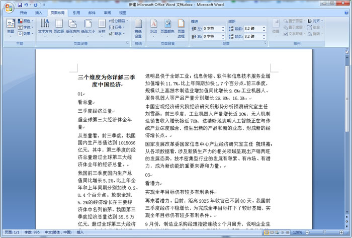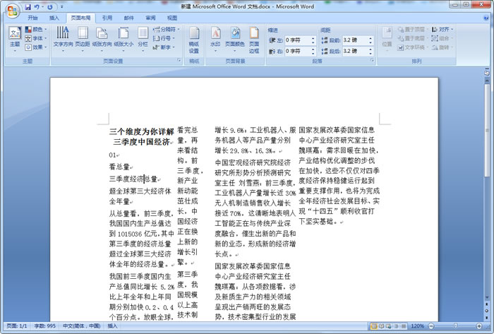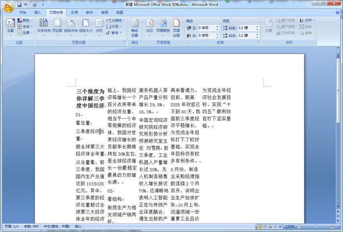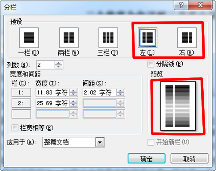 3、选择“左,右”可以使文章靠左分栏或靠右分栏,效果如图。