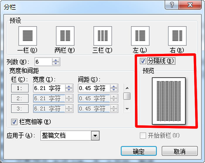 4、在列数中可以输入更多列,同时可以在预览中看到效果。
